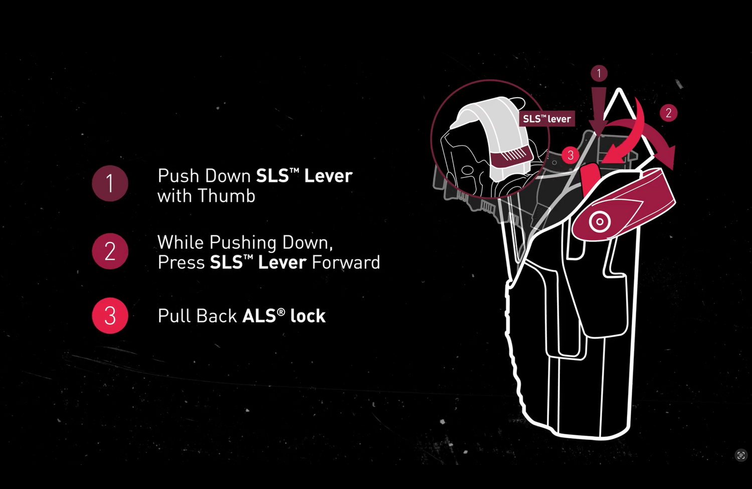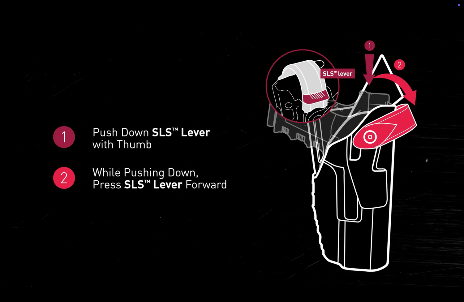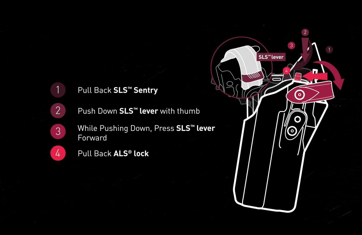 The most commonly used Safariland Duty Rated Level III Retention models have both the ALS® lock and the SLS™ strap. By combining the ALS and SLS security mechanisms, a total of three manual hand movements are required to release the firearm from the holster.