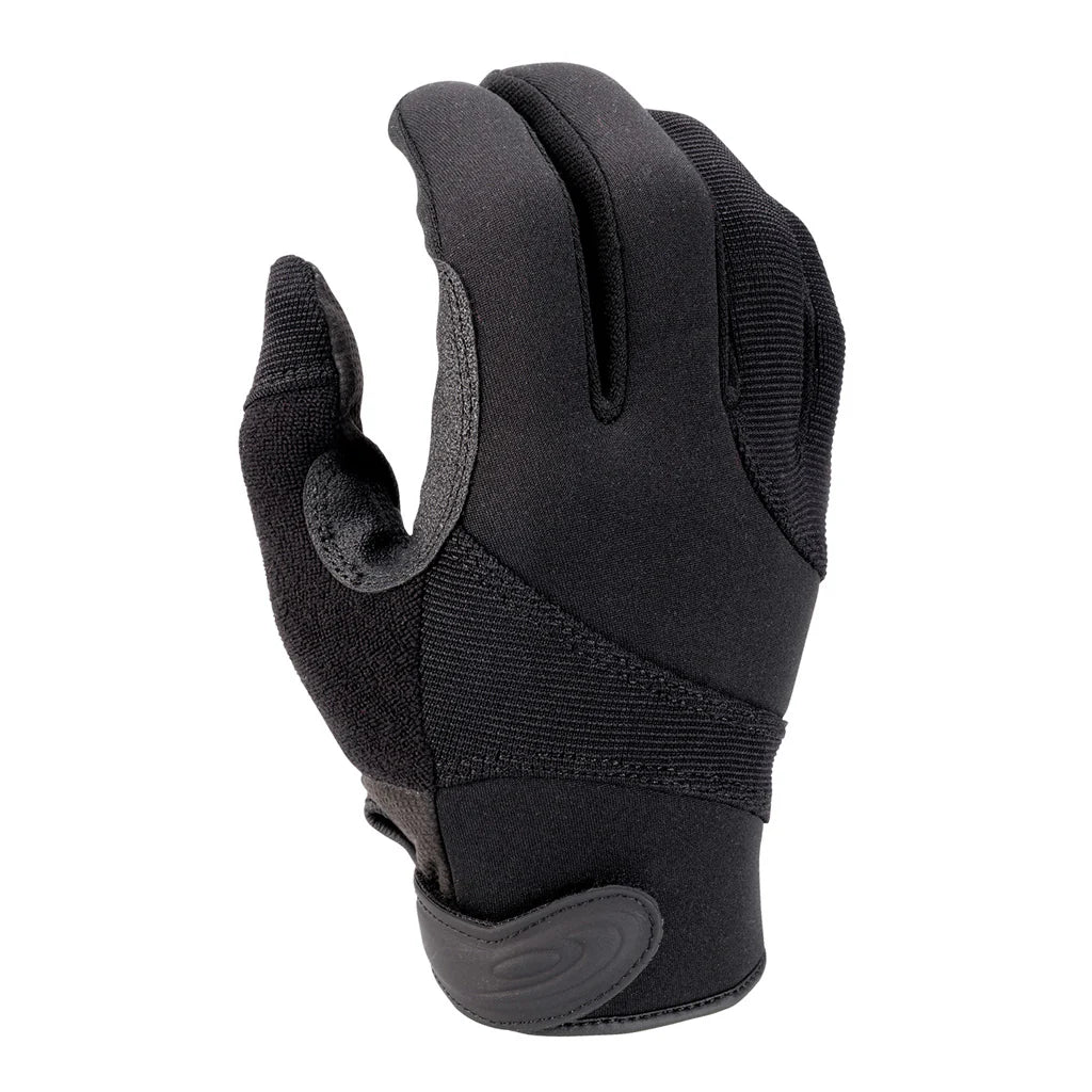 The SGK100 is a versatile tactical police duty glove with excellent dexterity and grip, along with the enhanced protection of a cut-resistant, inner-palm Kevlar® liner. The synthetic palm and nonslip patches in the cradle area provide a sure grip and positive weapon control. The stretch back allows air circulation for comfort and provides a snug fit. Hook and loop closure.