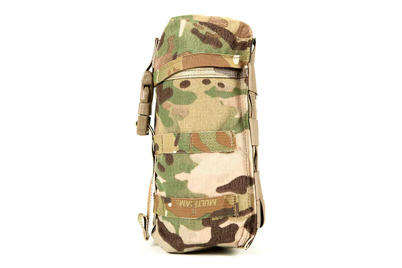 The pouch has a lid that covers and protects the bottle, which is secured with an adjustable side release buckle to accommodate different size bottles or canteens. The bottom of the Water Bottle Pouch is built with ULTRAcomp™ for added durability and has a single drain hole to allow condensation or debris to escape through the bottom of the pouch.